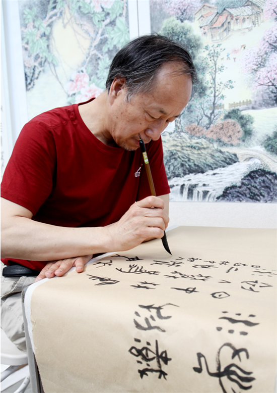 新疆李明華甲骨文書法家正在書寫甲骨文