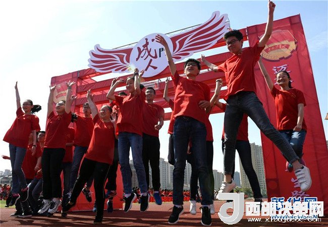 安徽淮南市第二中學(xué)學(xué)生穿越“成人門(mén)”(2018年5月4日攝)。新華社發(fā)(陳彬 攝)