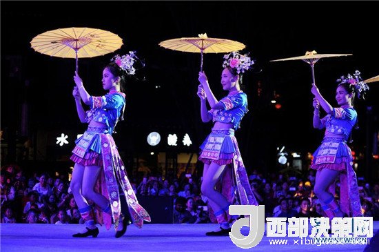 7月2日晚,在貴州省黔東南苗族侗族自治州丹寨縣,一場以苗族婚禮、苗族服飾為主的服飾秀在萬達小鎮(zhèn)舉行。中國以及來自喀麥隆、巴西、墨西哥、荷蘭等國的模特,集中展示民族服飾元素設計作品。新華社發(fā)(楊文斌 攝)