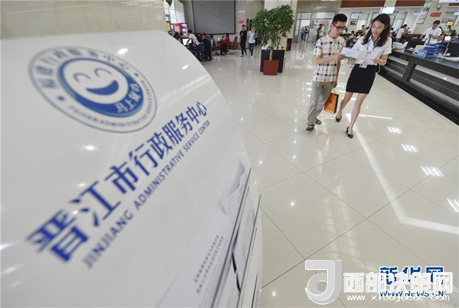 在晉江市行政服務中心,工作人員(前右)在引導市民辦理業(yè)務(6月19日攝)新華社記者 宋為偉 攝