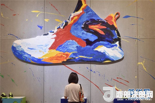 在一年一度的中國(晉江)國際鞋業(yè)暨國際體育產業(yè)博覽會上,一位客商在了解安踏運動鞋(2017年4月18日攝)。新華社記者 宋為偉 攝