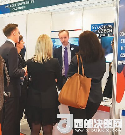 2017中國(guó)國(guó)際教育展(北京)上,近20所捷克高校及中學(xué)組成的捷克展團(tuán)亮相。圖為捷克某大學(xué)展臺(tái)。