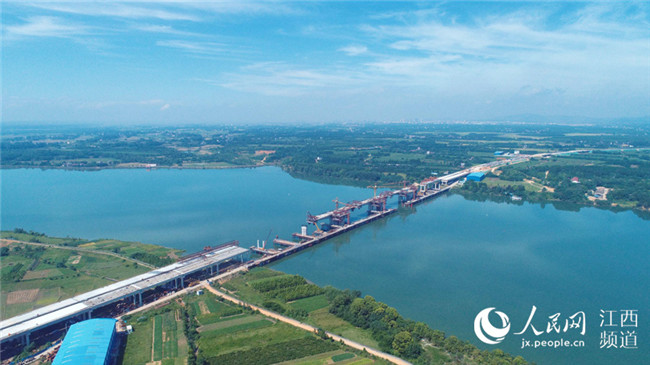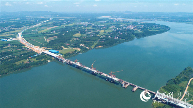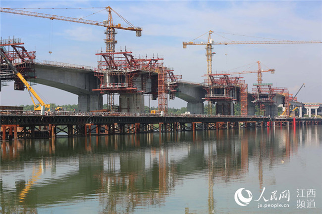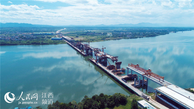 7月17日電17日上午,廣吉高速公路江西泰和北贛江特大橋正在進(jìn)行掛籃施工作業(yè),在藍(lán)天白云、綠水青山襯托下,顯得格外美麗壯觀。泰和北贛江特大橋位于江西省泰和縣萬(wàn)合鎮(zhèn),是廣吉高速公路唯一一座特大橋,是全線控制性工程,大橋總長(zhǎng)1075米,總投資近1.5億元。大橋自2016年11月開(kāi)工建設(shè)以來(lái),工程進(jìn)展順利,預(yù)計(jì)于今年底前建成合龍,為廣吉高速2019年1月如期建成通車(chē)奠定基礎(chǔ)。