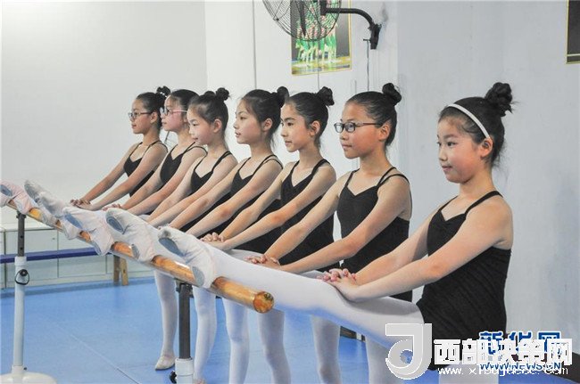 8月2日,小朋友在山東聊城高陽舞蹈學(xué)校訓(xùn)練房?jī)?nèi)練習(xí)基本功。 新華社發(fā)(許文豪 攝)