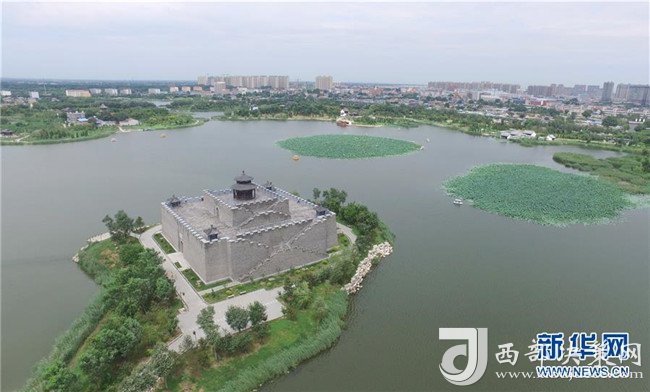 8月19日無人機拍攝的河北省河間市瀛州公園。