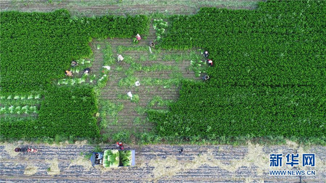 農(nóng)民在寧夏固原市西吉縣興隆鎮(zhèn)收割芹菜(8月9日無(wú)人機(jī)航拍)。地處西北內(nèi)陸的寧夏,既有高山大漠的雄渾,又有“塞上江南”的溫婉,自然造化之美自古入詩(shī)入畫。自治區(qū)成立60年里,尤其是黨的十八大以來(lái),這片熱土上的人民用勤勞和智慧,發(fā)展特色農(nóng)業(yè)、建設(shè)美麗鄉(xiāng)村、樹(shù)立文明鄉(xiāng)風(fēng),繪就一幅全新、壯美的鄉(xiāng)村振興新畫卷。新華社記者王鵬攝