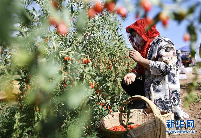 農(nóng)民在寧夏吳忠市同心縣潤(rùn)德莊園枸杞基地采摘枸杞(6月22日攝)。地處西北內(nèi)陸的寧夏,既有高山大漠的雄渾,又有“塞上江南”的溫婉,自然造化之美自古入詩(shī)入畫。自治區(qū)成立60年里,尤其是黨的十八大以來(lái),這片熱土上的人民用勤勞和智慧,發(fā)展特色農(nóng)業(yè)、建設(shè)美麗鄉(xiāng)村、樹(shù)立文明鄉(xiāng)風(fēng),繪就一幅全新、壯美的鄉(xiāng)村振興新畫卷。新華社記者王鵬攝
