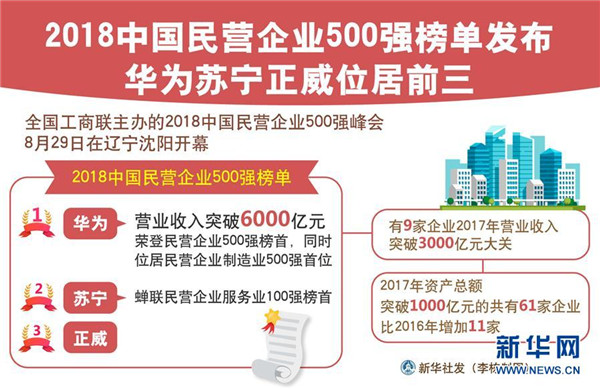 日前在沈陽(yáng)召開(kāi)的“2018中國(guó)民營(yíng)企業(yè)500強(qiáng)峰會(huì)”上,全國(guó)工商聯(lián)發(fā)布了最新的中國(guó)民營(yíng)企業(yè)500強(qiáng)榜單。
