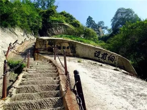 老君犁溝: "犁險于幢,幢險而犁突。"這描寫的是夾在陡峭石壁之間一條深不可測的溝狀險道,石階570多階。