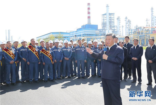 9月25日至28日,中共中央總書記、國家主席、中央軍委主席習近平在東北三省考察,主持召開深入推進東北振興座談會。這是27日上午,習近平在遼寧中國石油遼陽石化公司同工人親切交流。 新華社記者 鞠鵬 攝