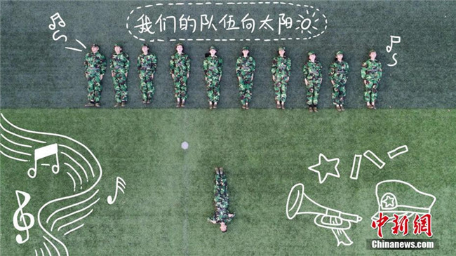 一提到軍訓(xùn),除了走方陣,站軍姿,你還能想到什么?近日,在福建師范大學(xué)協(xié)和學(xué)院2018級(jí)新生軍訓(xùn)場(chǎng)上,128位軍訓(xùn)新生以“閃閃紅星”“牢記八一”“嘹亮軍歌”等為題材拍攝出的一組航拍造型,并對(duì)照片進(jìn)行手繪加工,記錄下了新生們不一樣的軍訓(xùn)瞬間。陳可涵 攝 劉少航 繪