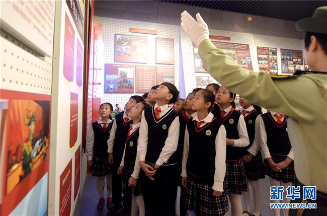 10月9日,少先隊員們在武警安徽總隊合肥支隊隊史館參觀。