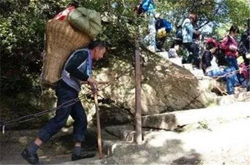 有游客好奇問挑山工:你都年紀(jì)不小了,找點(diǎn)輕松活干唄!把自己整這么辛苦,值得嗎?