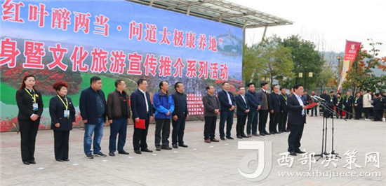 西部決策網(wǎng)——西部大開發(fā)訊(記者帥華鋒)十月的兩當,金風送爽,紅葉迎賓。正值習仲勛同志誕辰105周年之際,為了進一步傳承習仲勛等老一輩無產(chǎn)階級革命家在兩當兵變中創(chuàng)造出的“堅定執(zhí)著的理想信念,不怕犧牲的英雄氣概,百折不撓的頑強意志,依靠群眾的工作作風”精神,弘揚革命優(yōu)良傳統(tǒng)。10月16日,甘肅兩當縣“絢麗紅葉醉兩當·問道太極康養(yǎng)地”全民健身暨文化旅游宣傳推介系列活動在縣全民健身中心正式啟動。本次活動由中共兩當縣委、縣人民政府主辦,縣文化體育廣播影視局、縣體育總會、縣武術(shù)協(xié)會承辦。