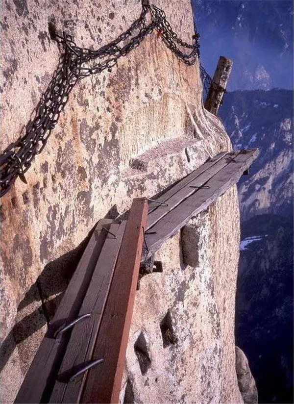 史學(xué)家考證:記載華山最早的書籍是《尚書·禹貢篇》,《史記·封禪書》載有黃帝、堯、舜巡游華山事。人們最早登臨華山主峰的記載見于《韓非子·外儲(chǔ)說左上》。酈道元的《水經(jīng)注》顯示,今日登山路已現(xiàn)雛形,至唐代已開辟出從華山峪經(jīng)青柯坪、云臺(tái)峰登頂?shù)穆肪€,即“自古華山一條路”,距今已有一千多年了。