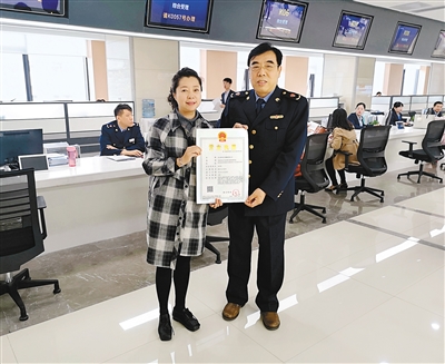 2018年全市新登記的第39萬(wàn)戶市場(chǎng)主體獲頒營(yíng)業(yè)執(zhí)照 記者梁璠 攝