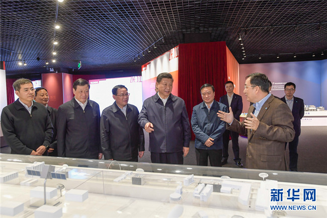這是6日下午,習(xí)近平在張江科學(xué)城展示廳考察,了解上??萍紕?chuàng)新和科技成果轉(zhuǎn)化情況。 新華社記者 謝環(huán)馳 攝