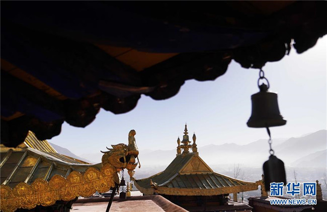 修繕后的布達拉宮金頂群(11月7日攝)。