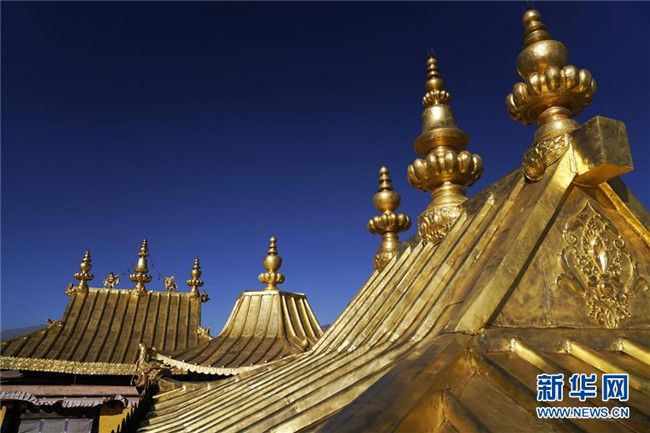 修繕后的布達拉宮金頂局部(11月7日攝)。 新華社記者普布扎西 攝