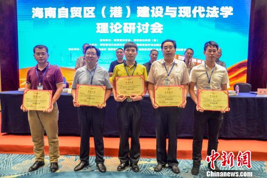 圖為海南省法學(xué)會向海南自貿(mào)區(qū)(港)法治建設(shè)優(yōu)秀論文撰寫者頒獎?!『閳?jiān)鵬 攝