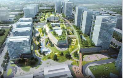 南京國(guó)家農(nóng)創(chuàng)園鳥(niǎo)瞰效果圖。