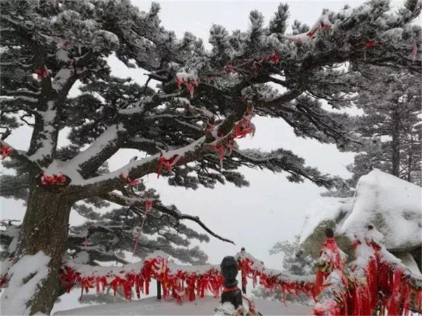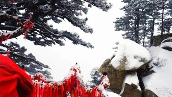 清晨,當(dāng)你推開山莊的窗戶,一定會(huì)驚詫眼前的景色。在夜色中掛在松針上的夜露凝固成一串串潔白的冰凌,漫山的松樹像開放著白色的花朵,在晨曦中閃著美麗,這就是華山奇景——雪松。在烏云厚重的日子,山風(fēng)會(huì)將云霧吹落在山澗峰嶺,把它變成一層厚厚的雪。站在峰嶺上看華山落雪,那是一片莽莽蒼蒼的銀白世界。雪花在風(fēng)中飄舞著,飄落著,你伸開雙臂雕塑般地佇立在潔白的世界中,“仰面朝天穹,低頭瞰黃渭”。一種豪情心底生,萬般俗念隨風(fēng)去,實(shí)在是一次難得的精神洗禮。——華山文化•冬