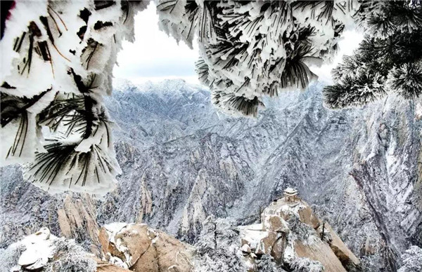 沒有人工雕飾的美,才是真正的美。比如下雪的華山,就是這樣毫無修飾的美,滿山雪白,景色壯麗。