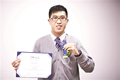 吳泓毅手持IOAA獲獎(jiǎng)證書(shū)和金牌。圖/廣州日?qǐng)?bào)全媒體記者莊小龍