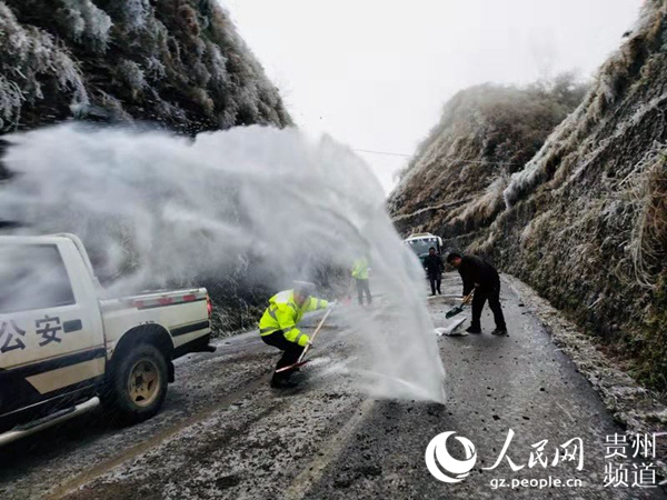 為防止凝凍帶來的各種隱患,保障司乘人員的生命財產安全,貴州各部門立即啟動緊急預案,迅速行動,不僅加大對各道路的巡邏管控,還連夜組織養(yǎng)護部門對轄區(qū)凝凍路段及易凝凍路段進行拋撒融雪劑。