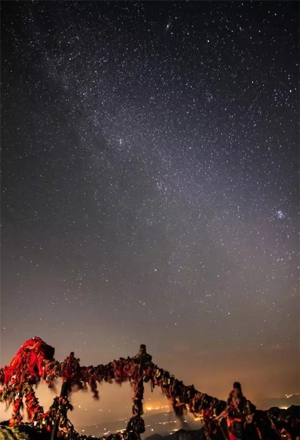 華山的月夜與星空交互輝映,佇立華山之巔,觀星河交匯,無際的銀河仿佛近在咫尺,在這里,你便被華山的夜色誘惑。