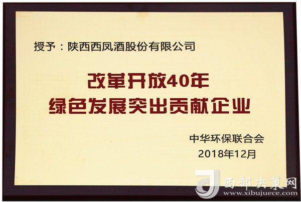 近日,在中華環(huán)保聯(lián)合會(huì)組織的“紀(jì)念改革開放40年中國(guó)企業(yè)綠色發(fā)展成就主題活動(dòng)”中,陜西西鳳股份公司因在綠色發(fā)展、生態(tài)文明、環(huán)境保護(hù)、節(jié)能減排等方面的突出成績(jī),榮獲改革開放40年“綠色發(fā)展突出貢獻(xiàn)企業(yè)”殊榮。標(biāo)志著該公司在實(shí)施綠色發(fā)展戰(zhàn)略、生產(chǎn)綠色產(chǎn)品、使用綠色技術(shù)等方面的卓越成果得到國(guó)家環(huán)保部門的充分肯定,達(dá)到了企業(yè)經(jīng)濟(jì)效益、社會(huì)效益、環(huán)境保護(hù)效益的有機(jī)統(tǒng)一。