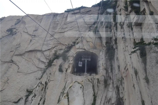 現(xiàn)在爬華山可不是“自古華山一條道”了,我們選擇坐西峰索道纜車,凌空飛渡千山萬壑。說是千山萬壑,其實(shí)華山是由一塊完整碩大的花崗巖石體構(gòu)成的。《山海經(jīng)》記載:“太華之山,削成而四方,其高五千仞,其廣十里。”真的很難想像,這么連綿起伏、巨大的山體,其實(shí)是一個(gè)群峰競(jìng)秀的整體。華山,就是這么神奇!