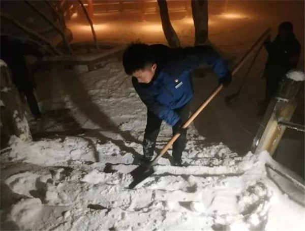 主峰區(qū)工作人員晝夜24小時(shí)不間斷清理積雪