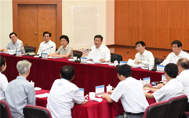 2014年9月9日,習(xí)近平在北京師范大學(xué)同學(xué)校師生代表進(jìn)行座談。新華社記者馬占成攝