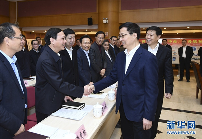2月18日,中共中央政治局常委、國務(wù)院副總理韓正到國家稅務(wù)總局調(diào)研并主持召開座談會(huì)。 新華社記者謝環(huán)馳攝