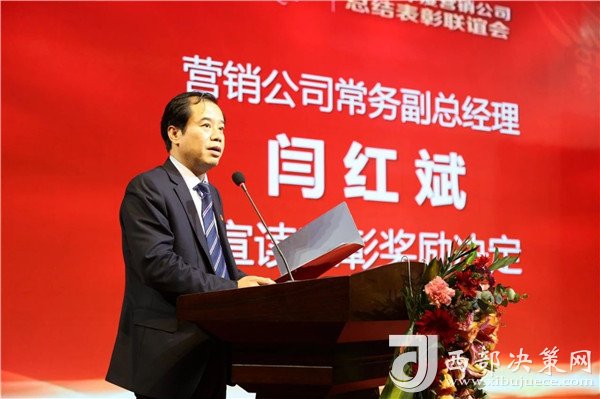 西鳳酒營銷公司常務(wù)副總經(jīng)理閆紅斌宣讀《關(guān)于對2018年度先進單位、先進個人給予表彰獎勵的決定》