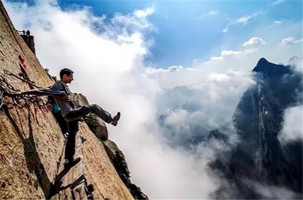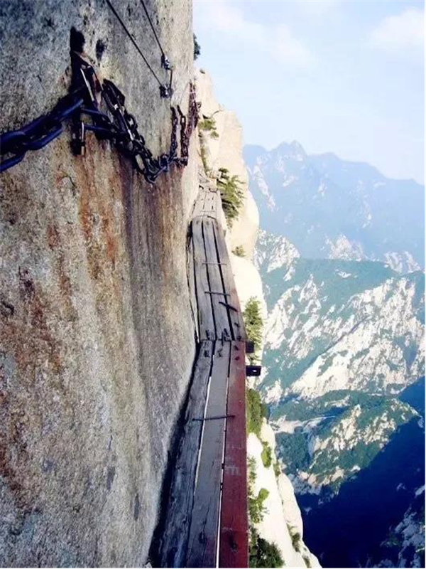 我站在華山兩塊窄窄的木板上,依靠鐵釘楔入巖石作為支撐,我的腳下,是1000米的深谷,冰雪的路面很滑。我來華山旅游純粹是因?yàn)樵诨ヂ?lián)網(wǎng)上瘋傳的一張圖片,也就是指“世界上最危險(xiǎn)的登山路”那張?,F(xiàn)在有了安全保護(hù)措施,實(shí)際上用不著擔(dān)心危險(xiǎn)了。恐懼慢慢涌上心頭,頭腦變得有些麻木。西安是中國(guó)的古城,在強(qiáng)盛朝代時(shí)期占有重要的歷史地位。