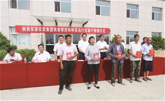 恒源集團精準(zhǔn)幫扶納林采當(dāng)村貧困戶捐贈儀式現(xiàn)場