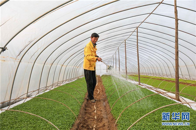 3月11日,在明光市管店鎮(zhèn)甜葉菊育苗扶貧基地,農戶在甜葉菊育苗大棚內忙碌。新華社記者 曹力 攝