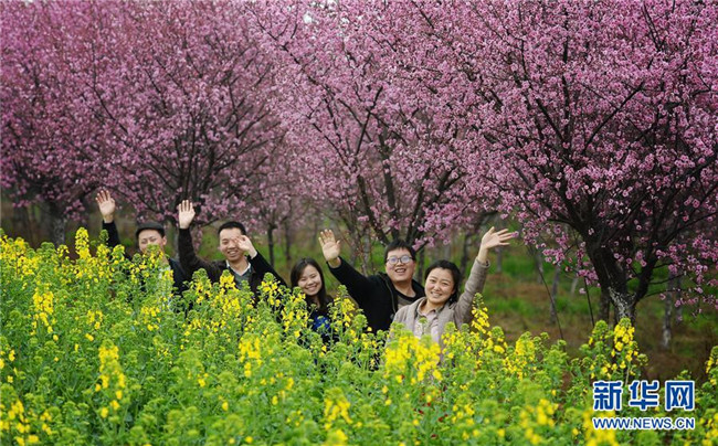 3月19日,游人在陜西勉縣新街子鎮(zhèn)踏春賞花。近日,陜西省漢中市勉縣新街子鎮(zhèn)數(shù)十畝美人梅開放,吸引游人前來踏春賞花。 新華社記者 劉瀟 攝
