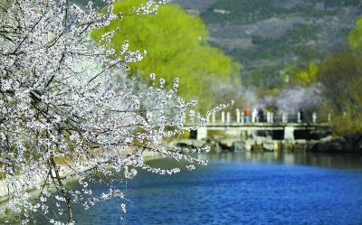 21日,北京植物園曹雪芹紀(jì)念館西側(cè)的山桃花溪景區(qū)進(jìn)入最佳觀賞期。本報(bào)記者 吳鏑攝