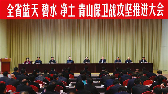 3月26日,全省藍(lán)天、碧水、凈土、青山保衛(wèi)戰(zhàn)攻堅(jiān)推進(jìn)大會(huì)在西安召開(kāi)。省委書記胡和平出席會(huì)議并講話。 記者 宋紅梅攝