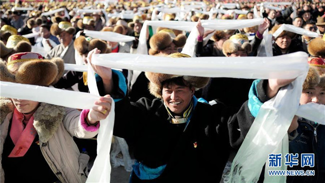 3月28日,慶祝西藏民主改革60周年大會(huì)在拉薩布達(dá)拉宮廣場舉行。新華社記者 普布扎西 攝