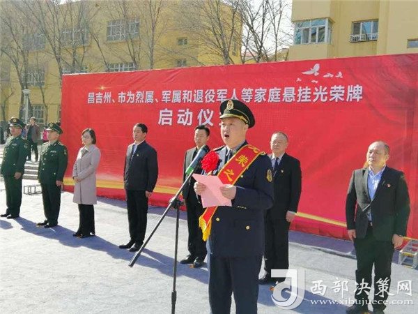 3月28日上午 ,昌吉州、市為烈屬、軍屬和退役軍人等家庭集中懸掛光榮牌啟動儀式在昌吉北京南路街道油運基地社區(qū)小游園舉行。 昌吉州、市領(lǐng)導、退役軍人事務局干部、現(xiàn)役軍人代表、烈屬、軍屬、退役軍人代表、各社區(qū)書記、訪惠聚工作隊隊長、雙擁干事共計300余人參加啟動儀式。