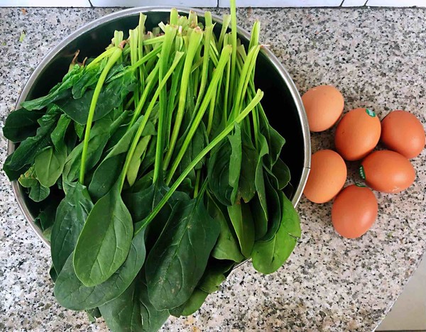 1.準(zhǔn)備原材料菠菜和雞蛋備用