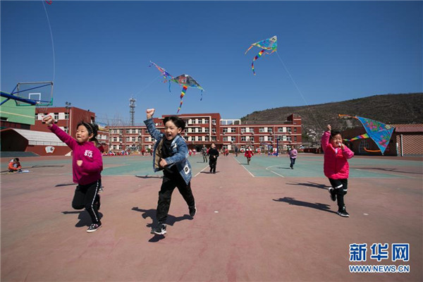 4月2日,門頭溝區(qū)妙峰山民族學(xué)校附屬幼兒園小朋友們在操場上放風(fēng)箏。新華社發(fā)(侯繼慶 攝)