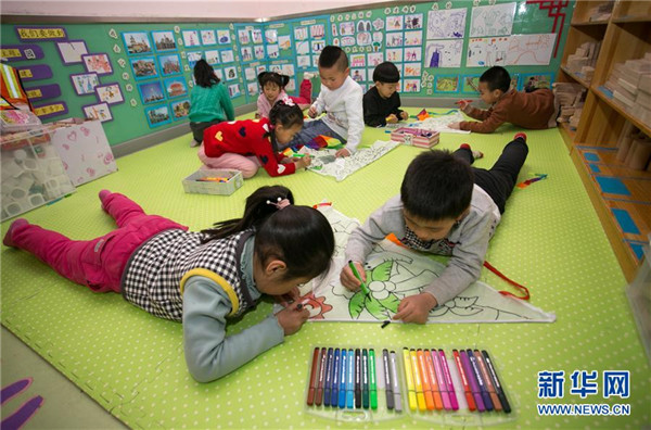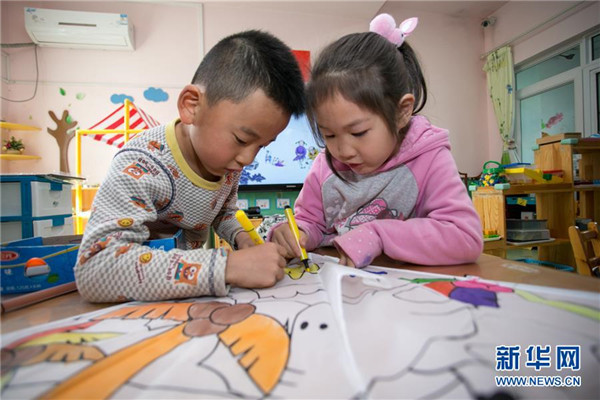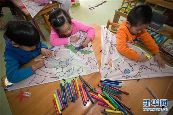 4月1日,門頭溝區(qū)妙峰山民族學(xué)校附屬幼兒園小朋友們在畫風(fēng)箏。新華社發(fā)(侯繼慶 攝)