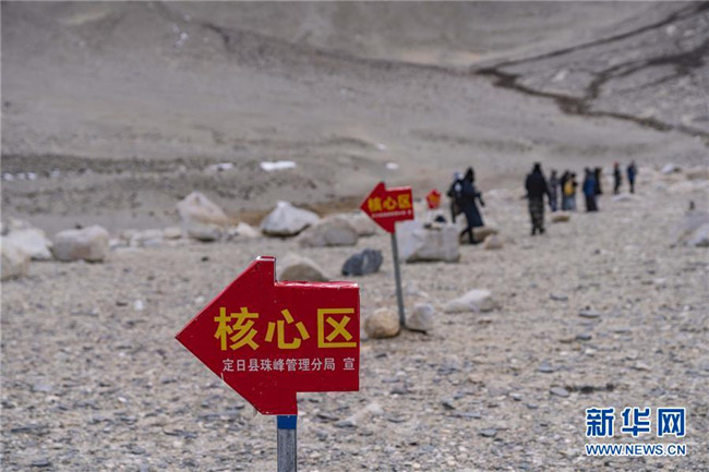 記者近日在絨布寺區(qū)域看到,珠峰保護區(qū)管理局在寺廟前方設(shè)立了禁止進入核心區(qū)的告示牌,標明核心區(qū)方向的紅色箭頭警示牌成排排列,告知游客不得繼續(xù)前行。日喀則邊境管理支隊珠峰邊境派出所也安排干警在核心區(qū)邊界巡邏,并提醒游客文明旅游,不得丟棄垃圾。