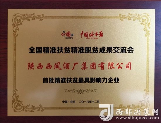 西鳳集團(tuán)公司榮獲全國“首批精準(zhǔn)扶貧最具影響力企業(yè)”榮譽(yù)稱號