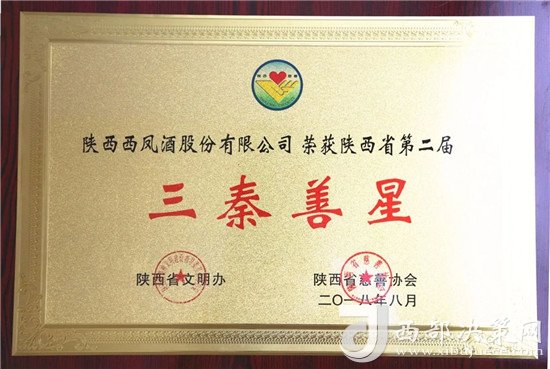 西鳳股份公司被授予陜西省第二屆“三秦善星”榮譽(yù)稱號
